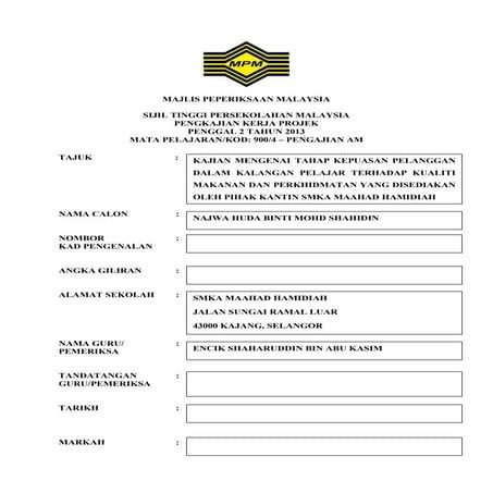 Borang Soal Selidik Kerja Kursus Pengajian Am Stpm 2016 2017 Pdf H. Semua pelanggan adalah dipohon untuk.
